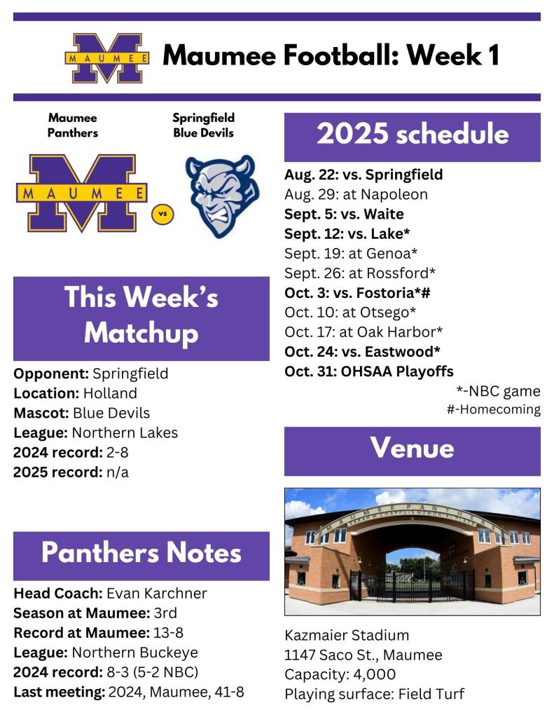 Maumee had little trouble dispatching Springfield 41-8 in last season’s opener. The Panthers are projected to win in similar fashion this year, so Karchner has put his players on high alert to stay focused.