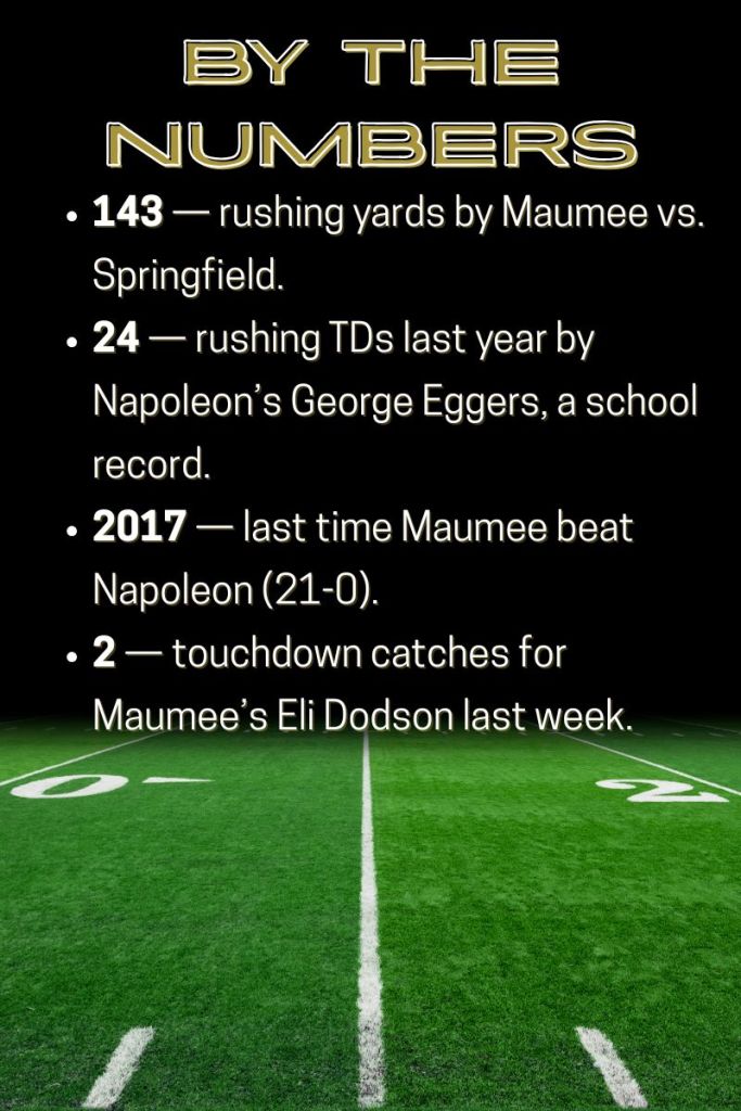 The schools haven’t met since Maumee joined the Northern Buckeye Conference. The Wildcats won the last matchup 47-7 in September 2022. Maumee’s last win in the series came in 2017, a 21-0 victory at Napoleon.