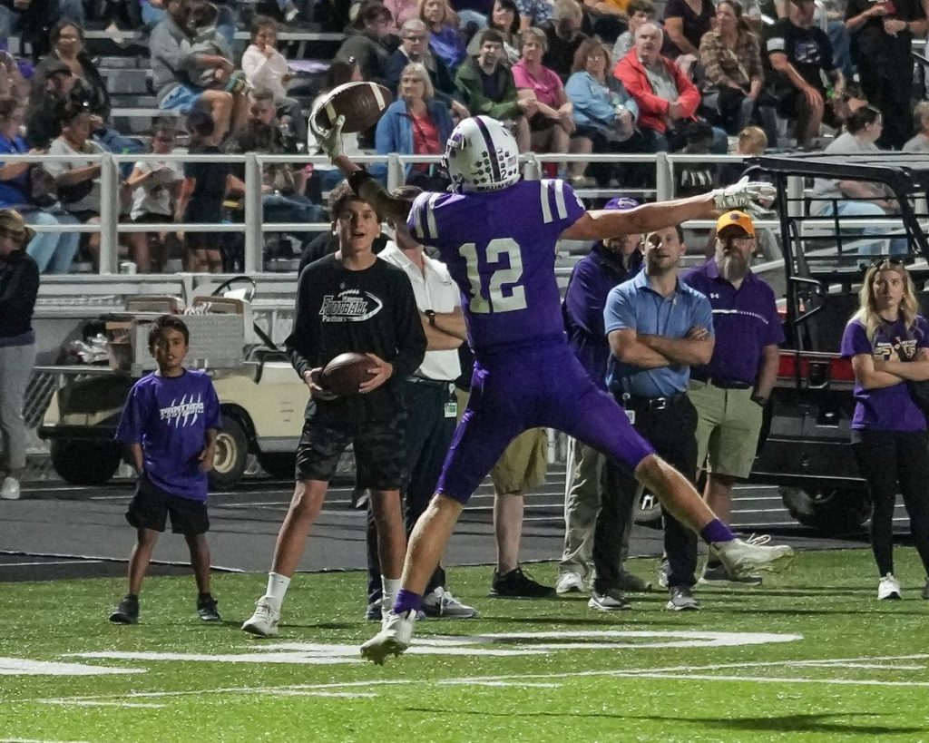 Eli Dodson pulled in a highlight reel catch in the second half against Lake, grabbing the pass with one hand and coming down in bounds. / Pride of the Panthers